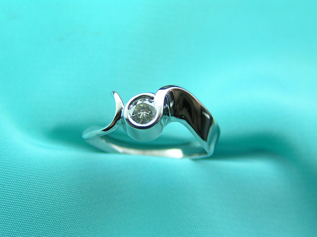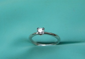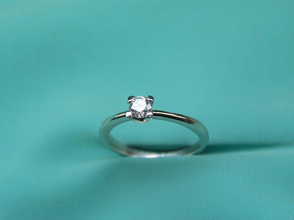 Anillo de oro blanco y diamante engastado en cuatro garras.