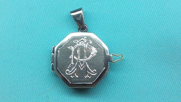 Colgante camafeo de plata forma hexagonal con letras grabadas a mano