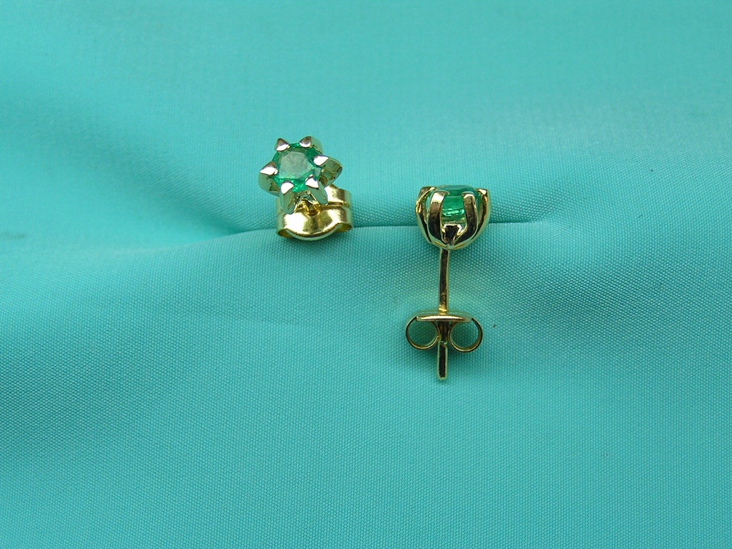 Pendientes de oro con esmeralda engarzada con seis garras.