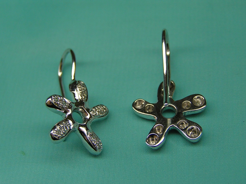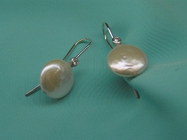 Pendientes de oro blanco con perla plana cultivada y diamante.