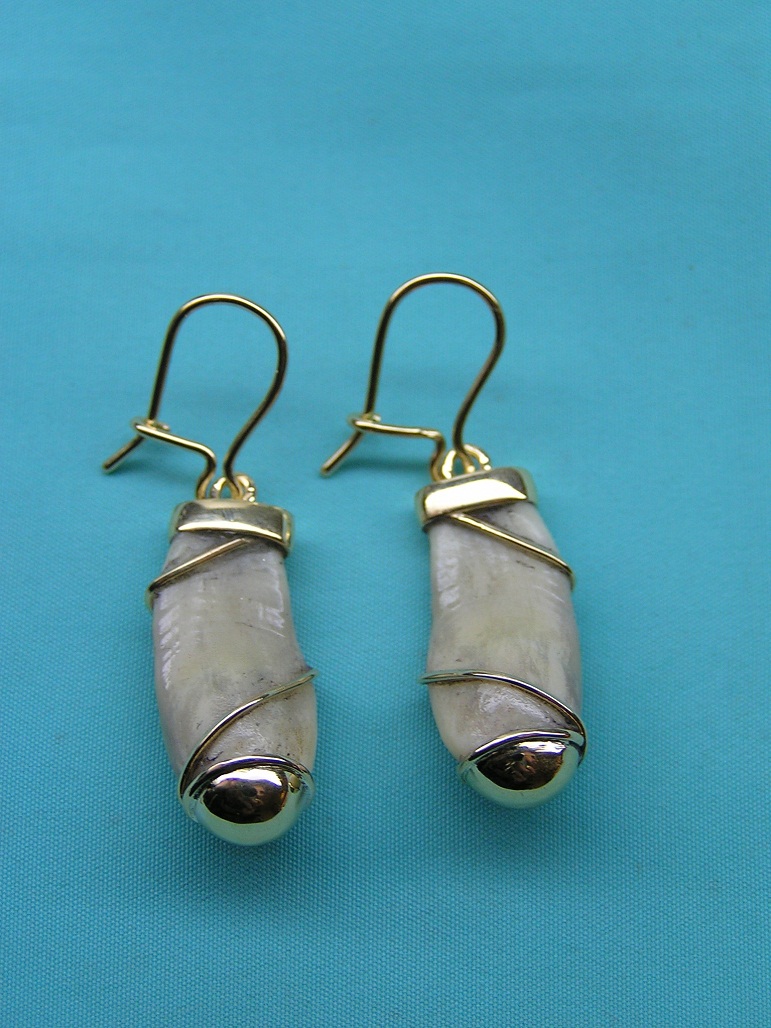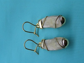 Pendientes de oro tipo arillas con pelos de elefantes o cuero.