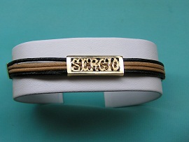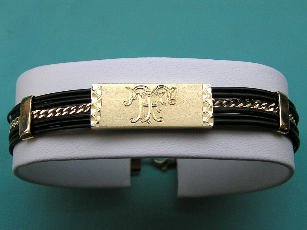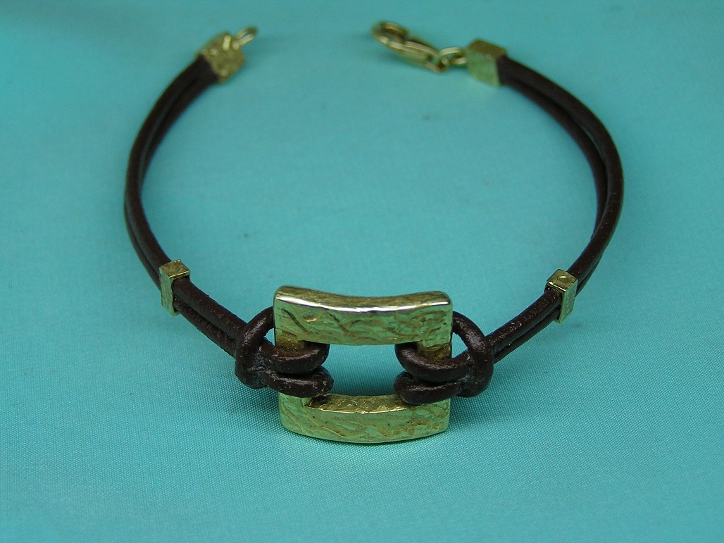 Pulsera de oro con pelo de elefante o cuero y cadena oro.