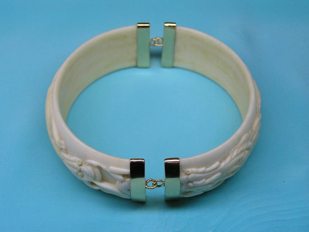 Pulsera de marfil con casquillas de oro uniéndolas.