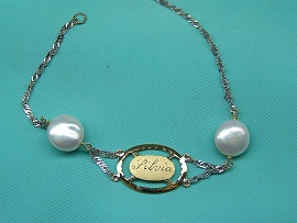 Pulsera de oro blanco y amarillo con dos perlas planas cultivadas.